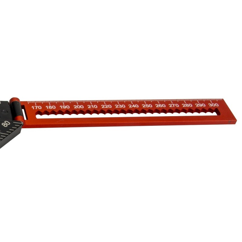 Patent pending fold out extension creates a 2 in 1 tool eliminating the need to carry a 150mmย and 300mm square.