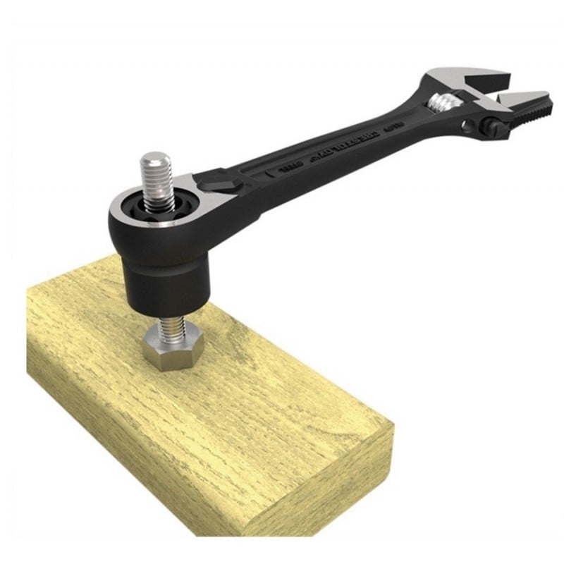 It includes a standard adjustable wrench with a maximum 1-1/8′ jaw capacity, but the jaw on the wrench head can be easily removed and reversed, turning it into an adjustable pipe wrench with a maximum 1′ capacity.