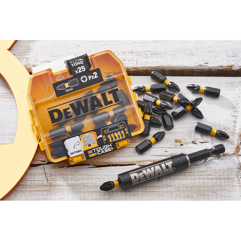 DEWALT PZ2 Impact Extreme Torsion Bits X 25 in Tic Tac Tstak Dispenser Includes Black Magnetic Screw Guide Self Retracting Bit Holder