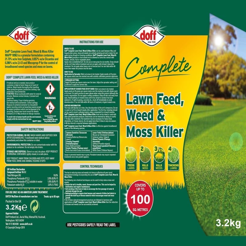 Doff 4 in 1 CompleteLawn Grass Feed Weed Moss Killer 3.2kg