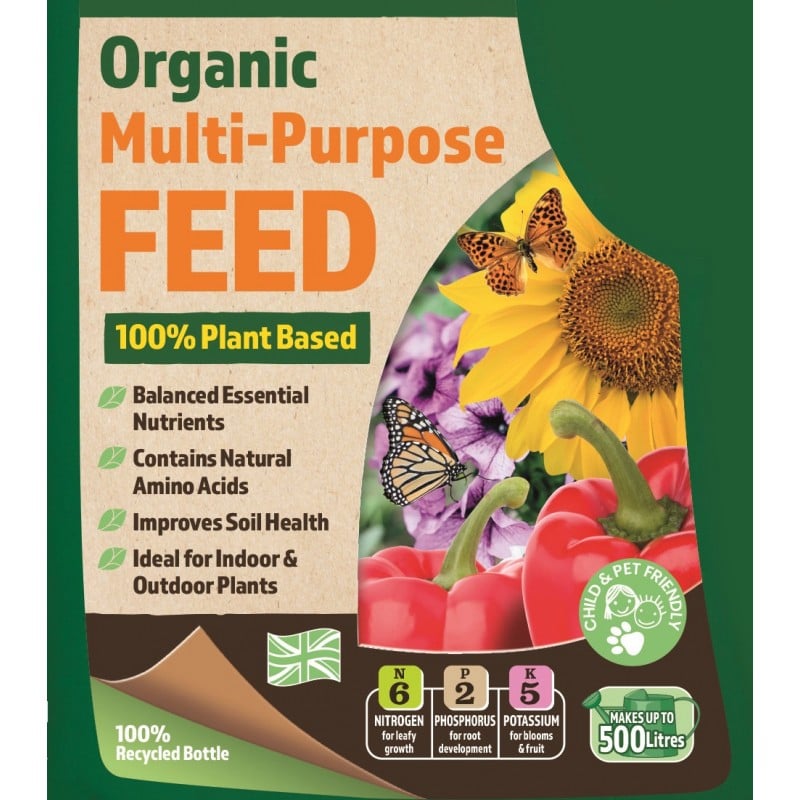 Greenfinger organic multi purpose feed contains a balanced combination of nutrients to encourage strong healthy growth in all fruiting and flowering plants as well as supplying all the important nutrients needed by all plants to grow successfully a truly all round plant food.