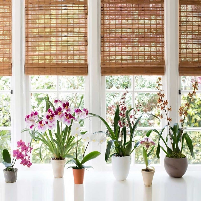 A window provides bright enough light for growing orchids.