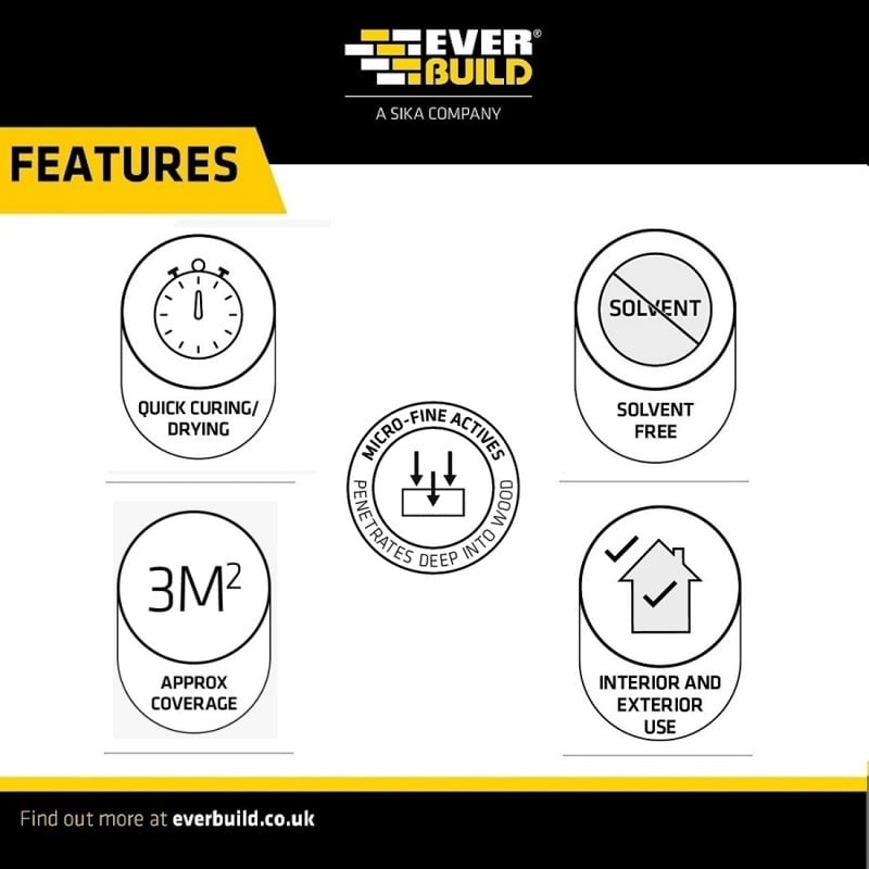 Specifically designed to deeply penetrate all wood and joinery giving long lasting protection from damage caused by wet rot, dry rot, decay and fungi.