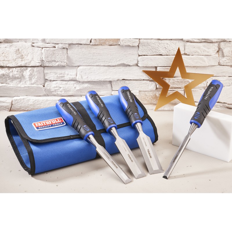 Faithfull Blue Wood Chisel 4 Chisel Set in Storage Roll