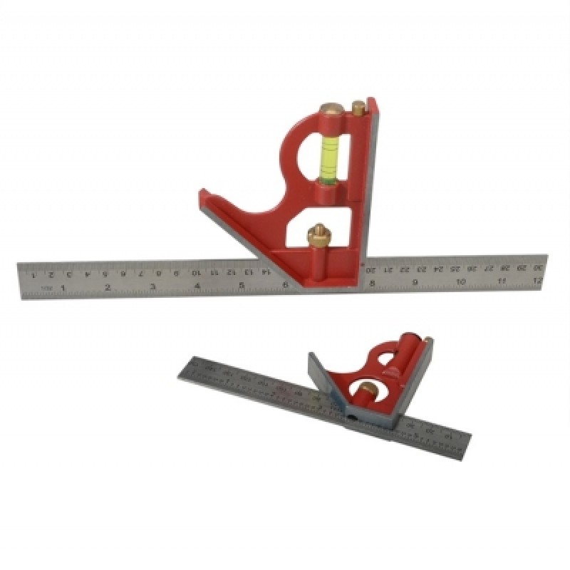 Each square features a high quality cast and machined sliding stock, fitted with a stainless steel rule engraved with both imperial and metric graduations, a spirit level and marking scribe.