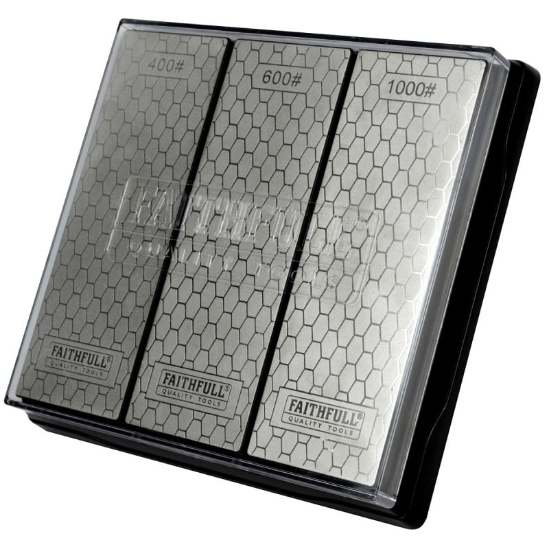 The Faithfull Diamond Whetstone Kit contains 3 stones for quick, easy