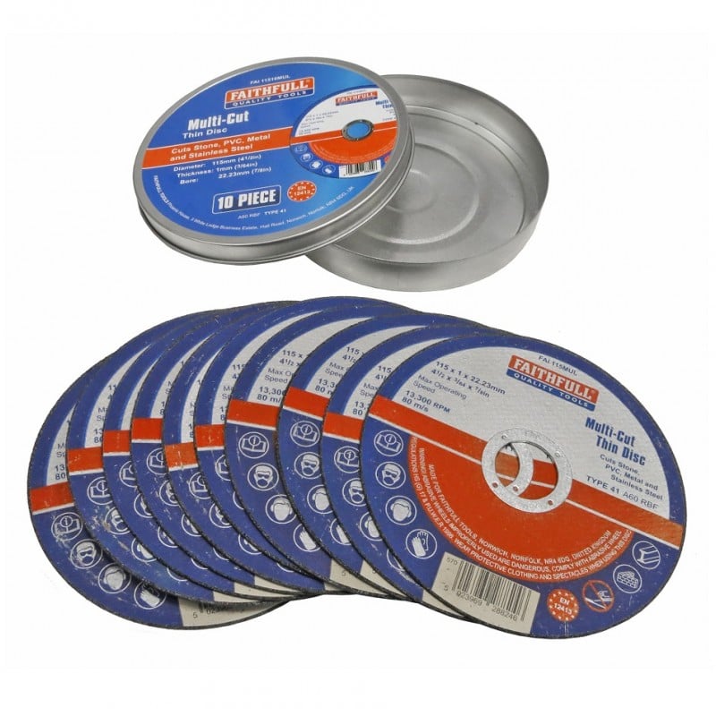 10 x Faithfull Multi-Cut Cutting Discs will cuta wide range of materials used in the construction and fabrication industries.