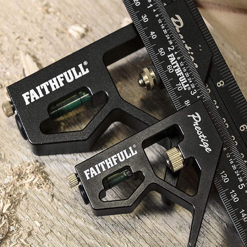The squares feature a high-quality sliding stock, fitted with a laser engraved rule with both imperial and metric graduations on both sides.