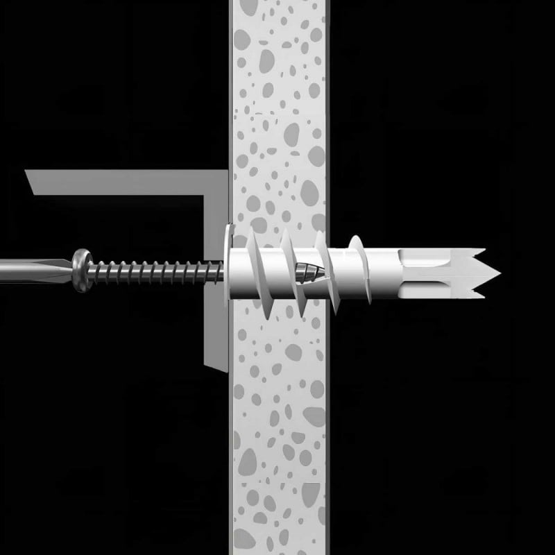 Countersunk head feature on the plug allows flush fitting of the screw to the plasterboard.