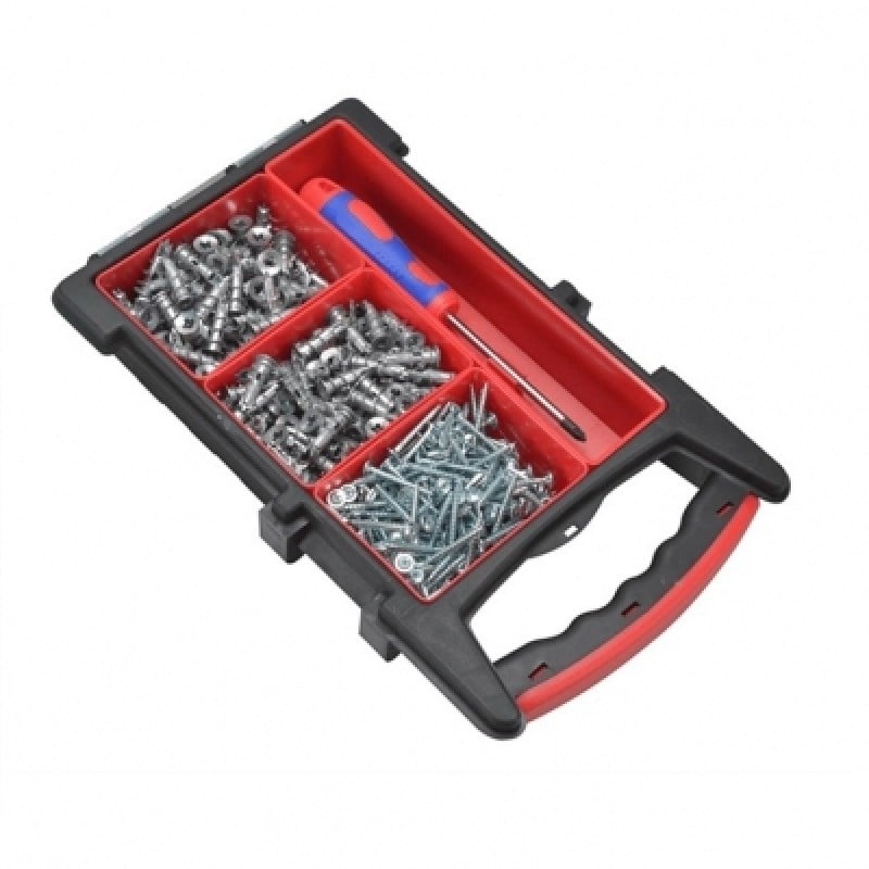 Screwdriver and re-usable Organiser with 4 pull out trays