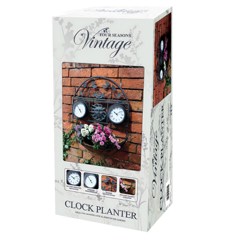 Four Seasons Vintage 3 in 1 planter Garden Clock and Garden Thermometer