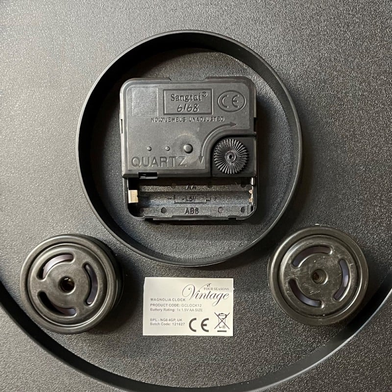 Battery operated easy set clock with a stylish vintage finish this has 3 functions clock thermometer and hygrometer.