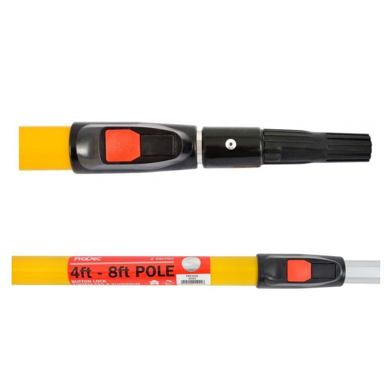 The ProDec push button paint roller pole a trade quality fibreglass and aluminium pole with its excellent secure positive extension being achieved by the