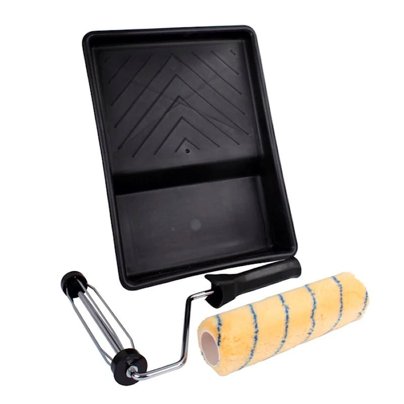 Prodec Medium Pile Sleeve 9 inch Paint Roller Frame Tray and Brush 4 Piece Set