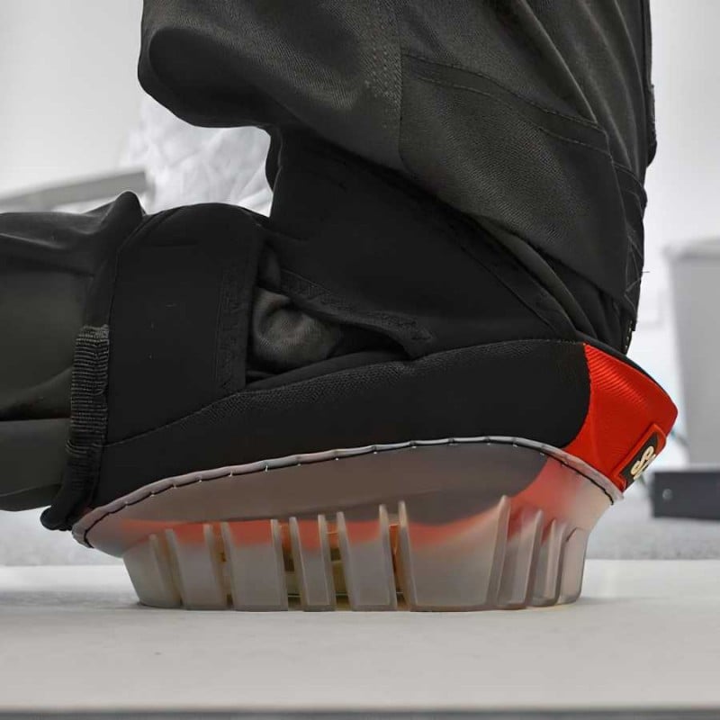 Adjustable neoprene straps and hook & loop fastening system, allow them to be easily attached over work trousers.