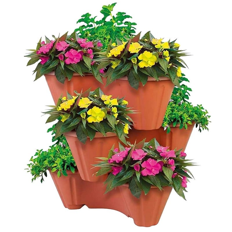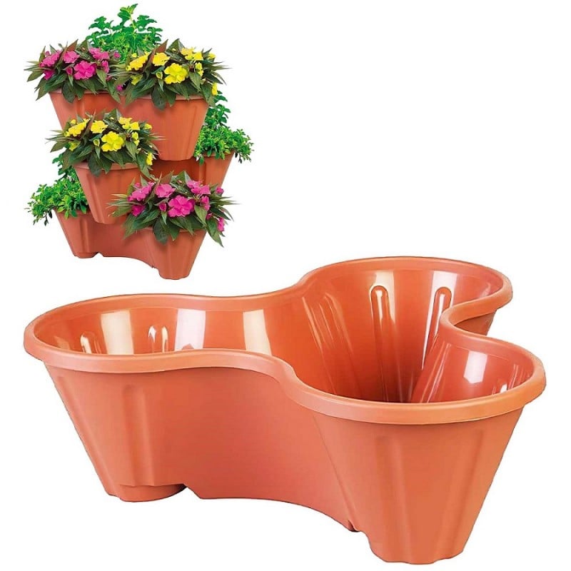 Plastic single or stackable plant pots ideal for strawberries, flowers and herbs cultivation if planted as a single layer you have 4 planting areas when stacking you have 3 on the lower levels.