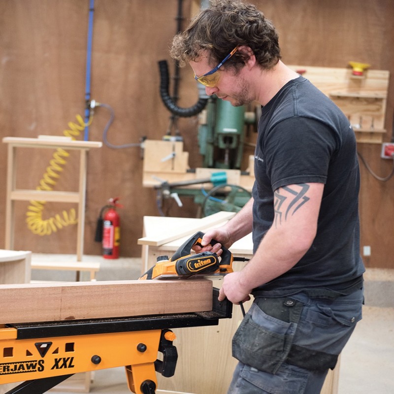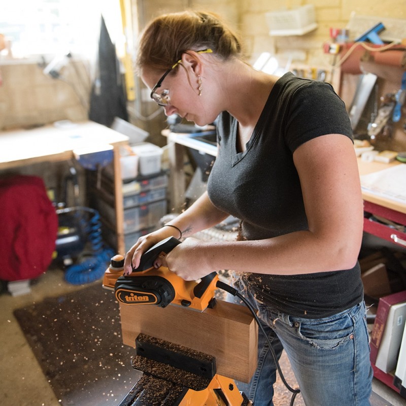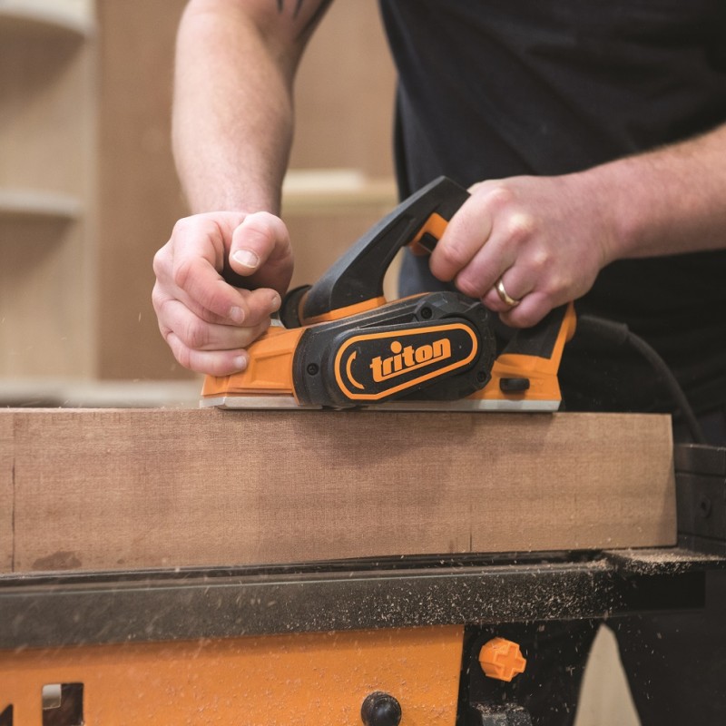 Triton Compact Mini Electric Planer a powerful 450 watt planer with 6-stop depth control for precise material removal.